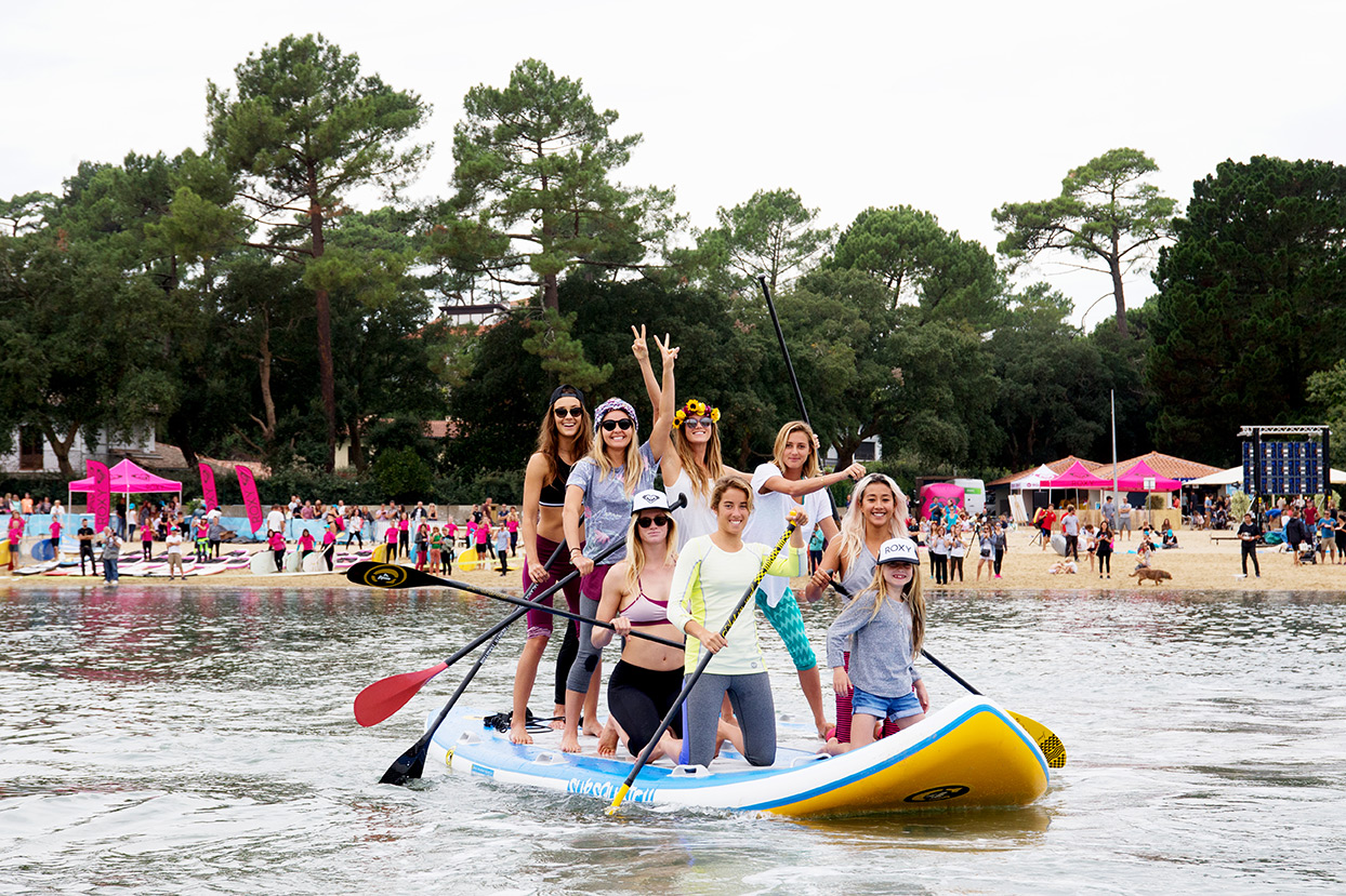 While Round 3 got underway at the #ROXYpro France, over 2000 girls joined team riders; Kelia, Bruna, Monyca, Bianca, Justine, Lee-Ann, Chelsea, Lisa and Sierra to take Hossegor Lake by storm for the final European stop on the 2015 #RUNSUPYOGA global tour.